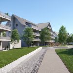 Die 2.5 bis 5.5 Zimmerwohnungen fügen sich perfekt in eine natürlich gestaltete Umgebung ein. Der hochwertige Ausbau und die grossen Balkone bieten ein entspanntes Leben am Stadtrand.