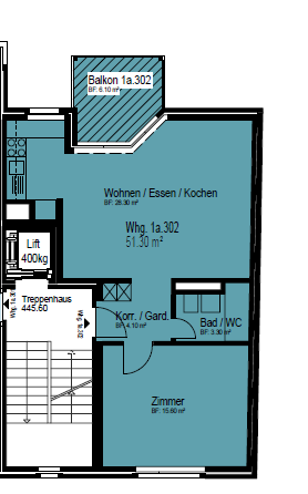 Wohnung 303 im 2. Obergeschoss, 51.30m2 (per sofort oder nach Vereinbarung)