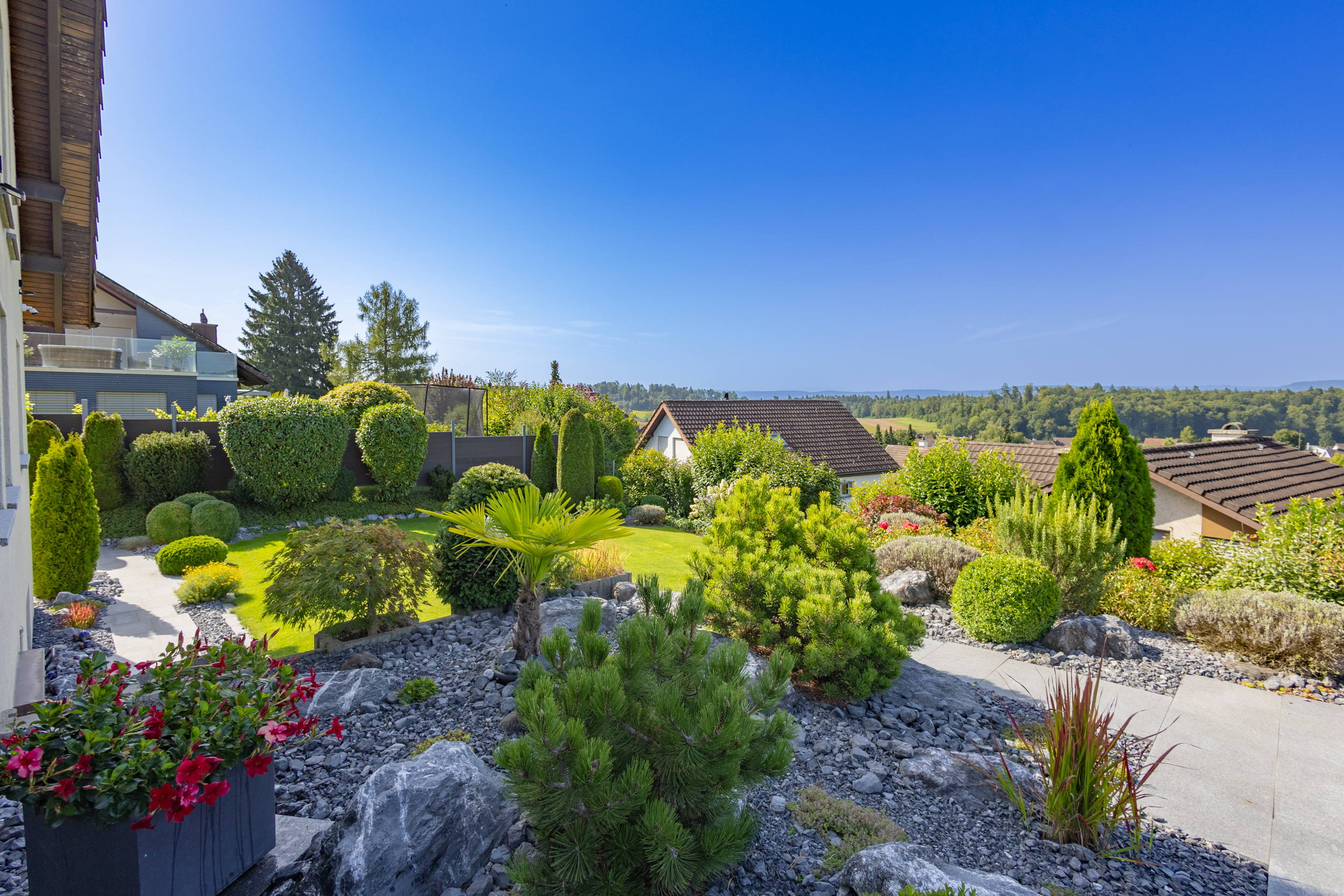 Der weitläufige Garten mit Südwest-Ausrichtung verspricht Sonne bis in die Abendstunden. Geniessen Sie gesellige Grillabende auf der Terrasse mit Freunden, Familie und Blick auf das Alpenpanorama. Ob als stilvoller Rückzugsort, Ort für Familiengeschichten oder als Zuhause mit zusätzlichen Einnahmemöglichkeiten, dieses Objekt bietet Ihnen alles das, was heute selten ist: Raum, Ruhe, Aussicht und Potenzial.