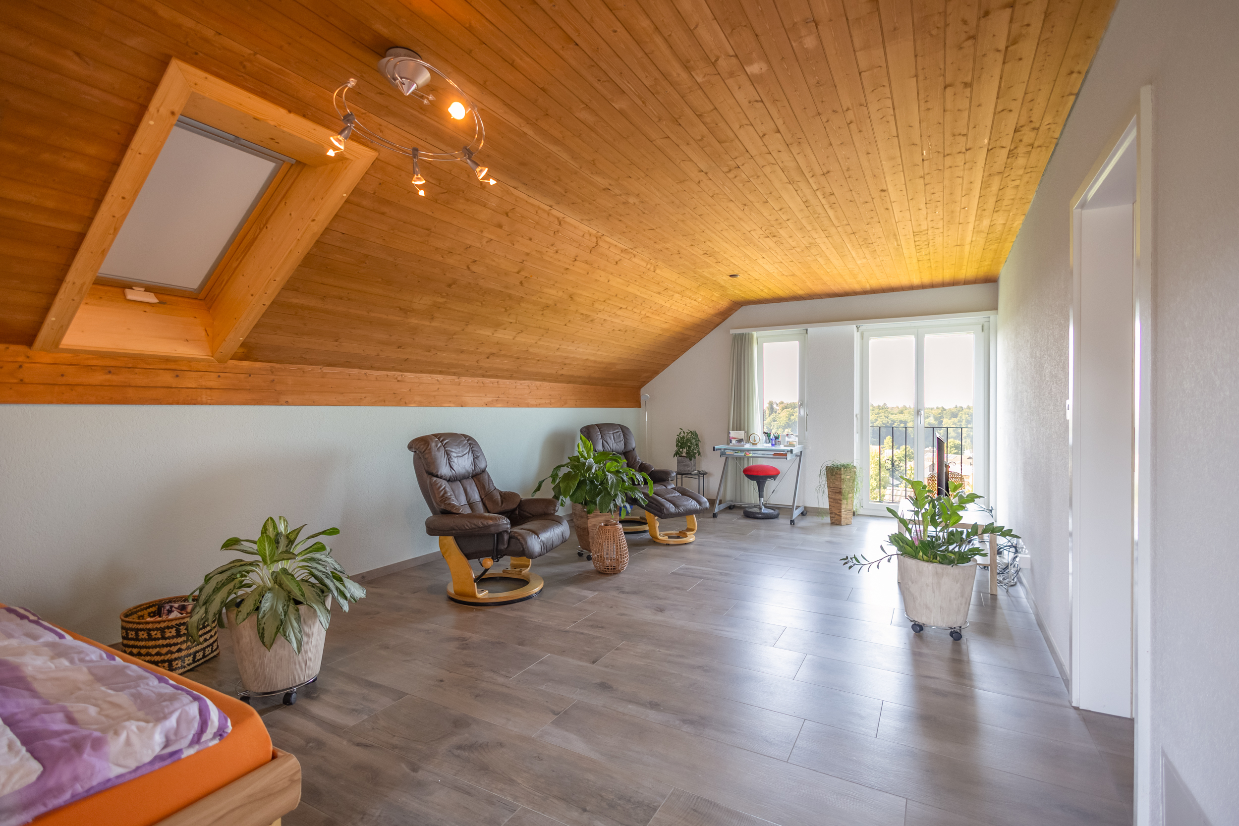– Charmante Dachschrägen mit Holz-Täfer und Raumhöhen über 2.5 m