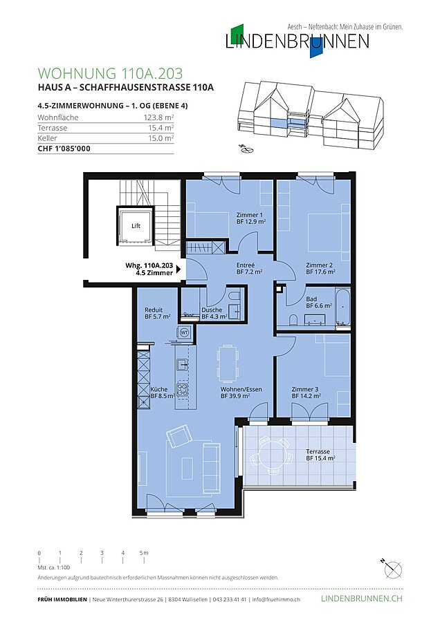 Das aussergewöhnliche Neubauprojekt «Lindenbrunnen» überzeugt durch den Mix aus urbaner Wohnkultur und ländlicher Natürlichkeit, der facettenreichen Auswahl an Grundrissvarianten und Wohnungsgrössen.