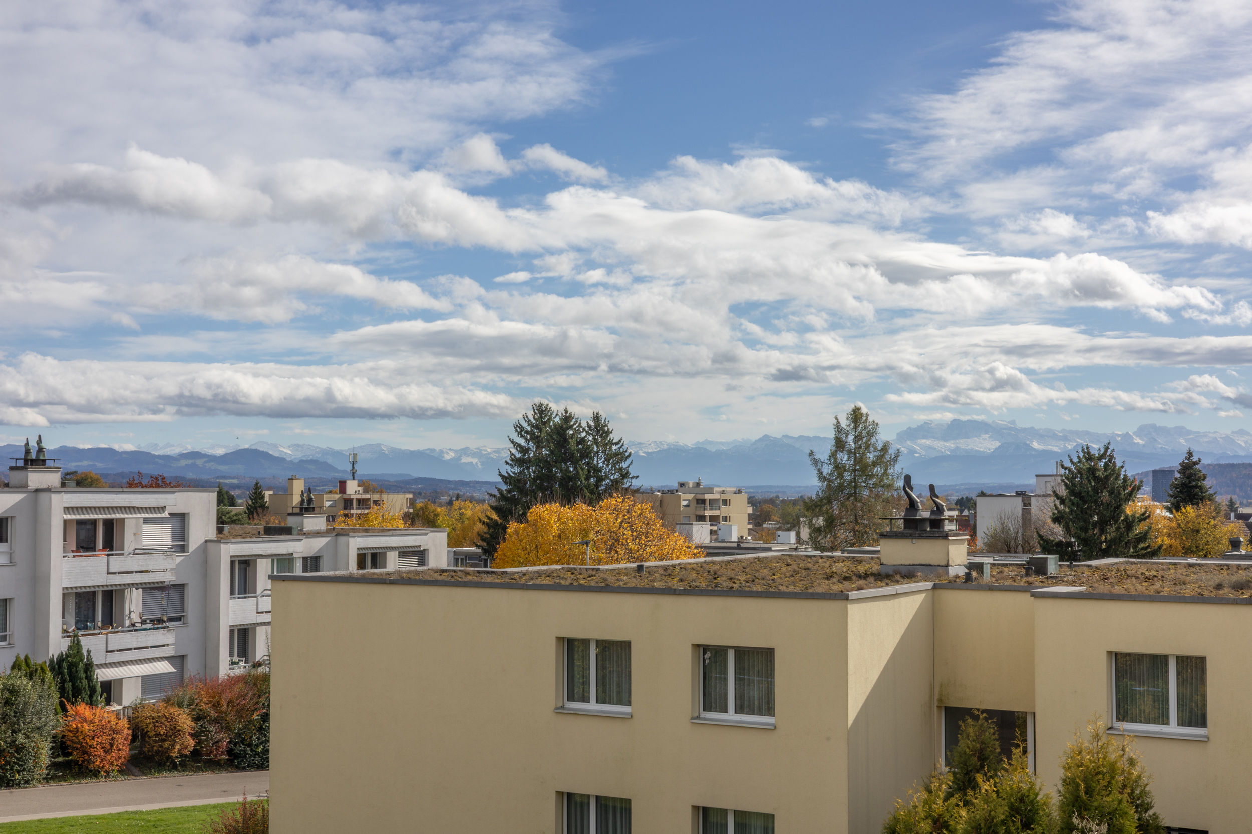 Auf klaren Tagen eröffnet sich ein atemberaubendes Alpenpanorama. Ein Ausblick, der jeden Tag zu etwas Besonderem macht.