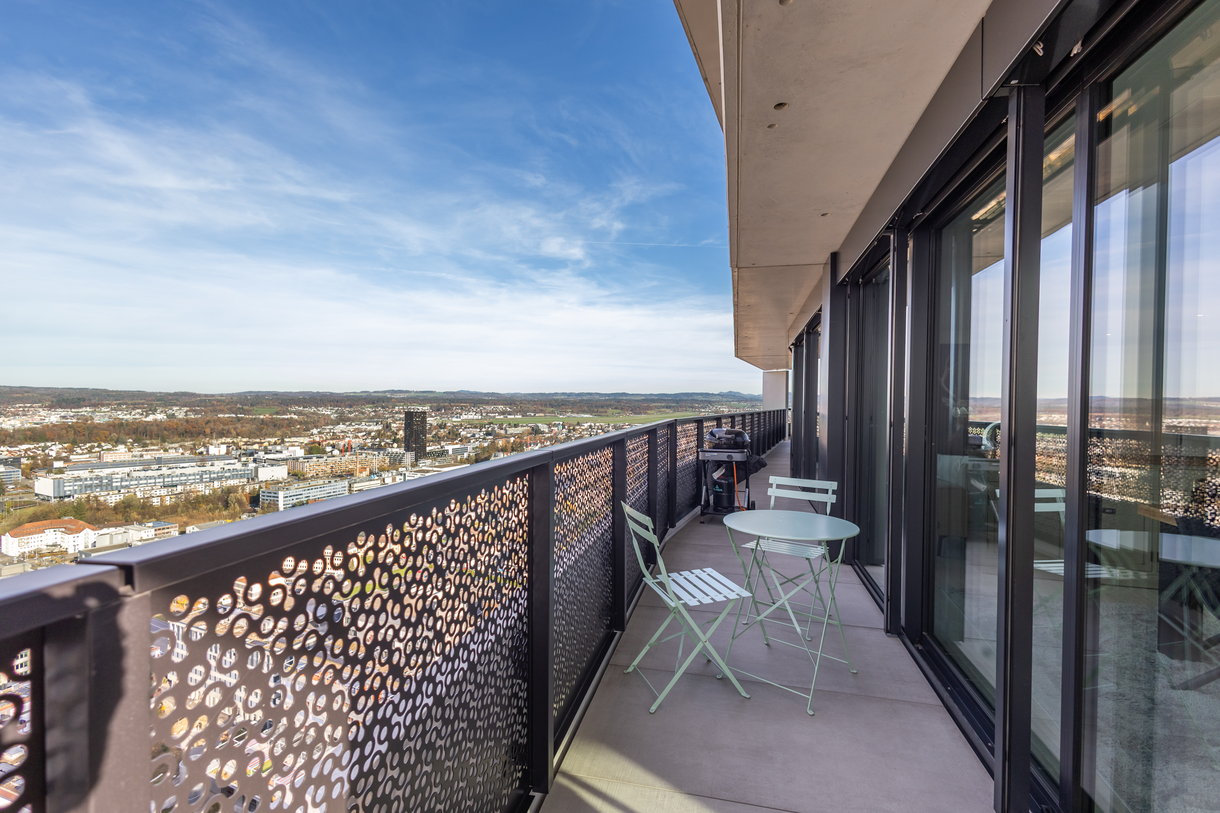 Willkommen in Ihrem neuen Zuhause! Wohnen in der vierhöchsten Wohnung der Schweiz, mit einem Wohnzimmer von 66m², eigener Klafs Premium Sauna (ungebraucht), einer Massangefertigten Küche von Oberland Küchen AG, verbunden mit einem atemberaubenden Ausblick und eigenem Fitnessbereich. Dies wird Ihnen mit dieser wirklich einzigartigen Wohnung alles geboten. Diese mehr als aussergewöhnliche 5.5-Zimmer-Wohnung, thront im 35. Stock des höchsten Wohnhochhauses der Schweiz, das mit stolzen 38 Stockwerken schon fast den Himmel berührt. Hier erwartet Sie ein Wohnkonzept der Extraklasse, das neue Massstäbe setzt und höchste Ansprüche an Wohnkomfort und Ästhetik erfüllt.