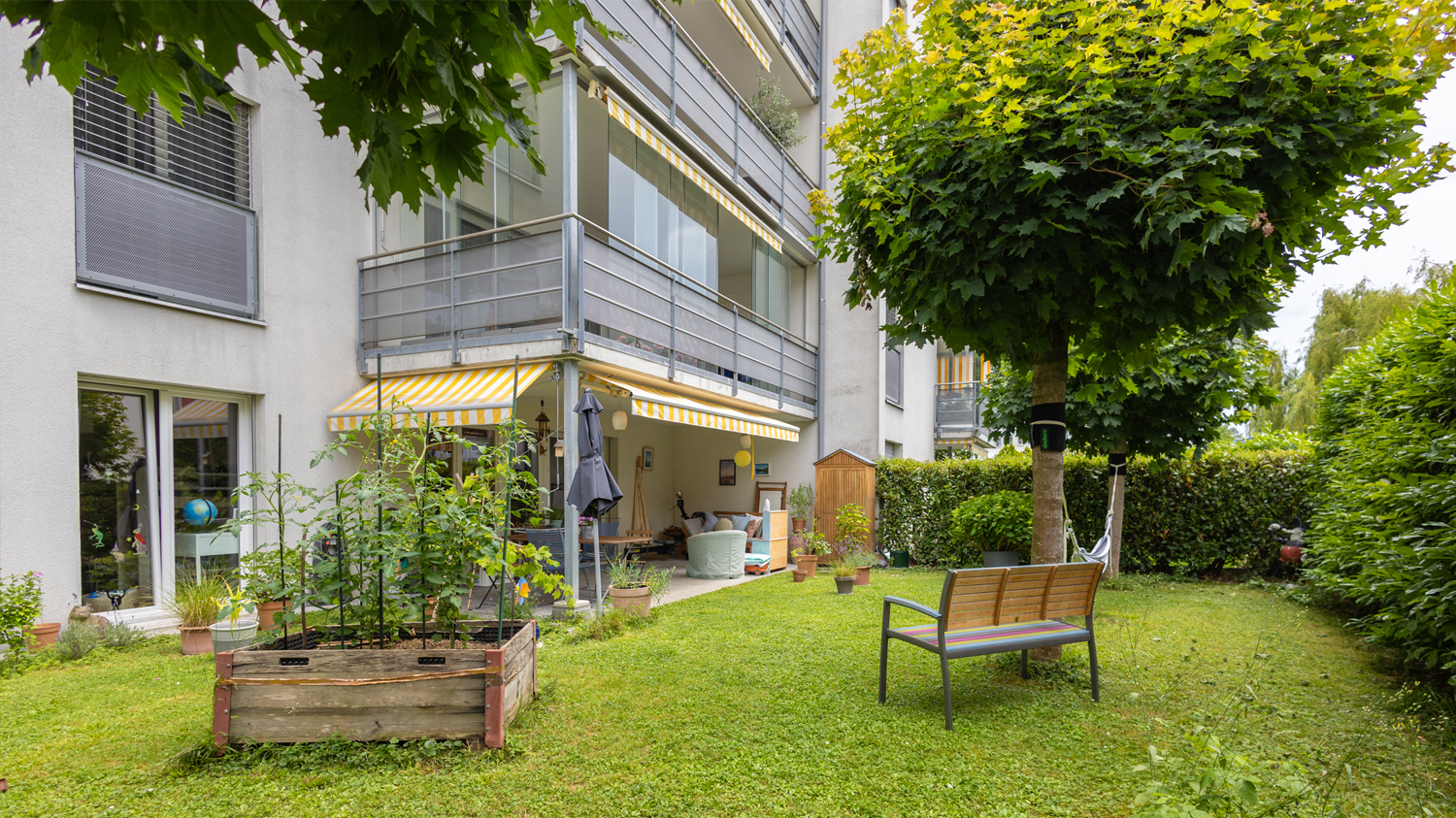 „Living mit Green Touch“, moderne Gartenwohnung mit ca. 140 m² Privatgarten in Dübendorf. 204 durften wir diese stilvolle 3.5 Zimmer Gartenwohnung im beliebten Dübendorf einem neuen Eigentümer übergeben. Ein durchdachter Grundriss, viel Tageslicht und ein ca. 140 m² grosser Privatgarten schaffen ein Wohngefühl, das moderne Ansprüche mit naturnahem Lifestyle verbindet. Die ruhige Lage, die hervorragende Anbindung an Zürich machen dieses Zuhause ideal für Singles, Paare oder kleine Familien.