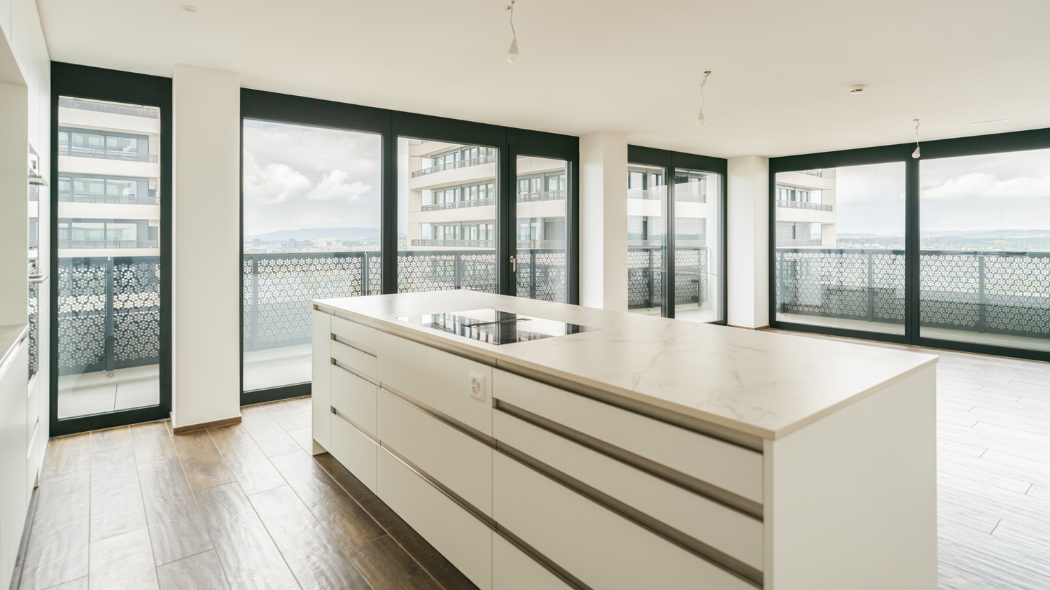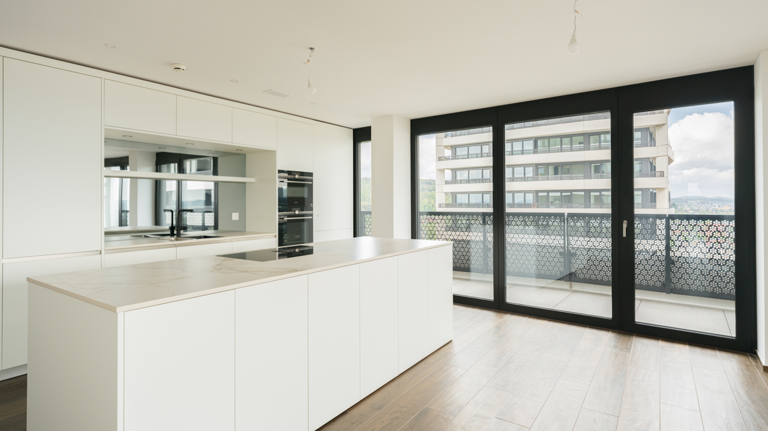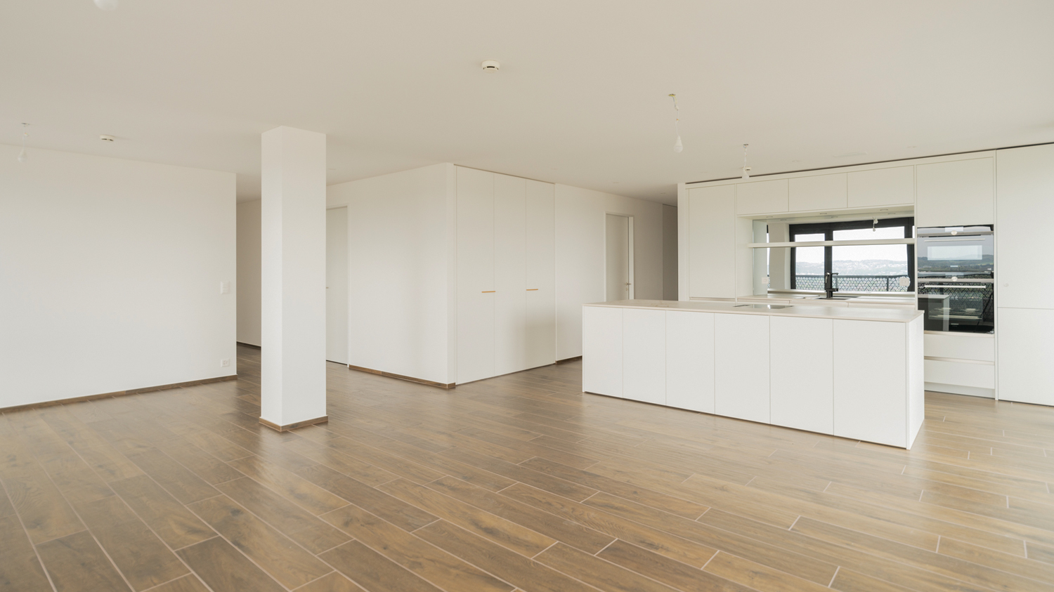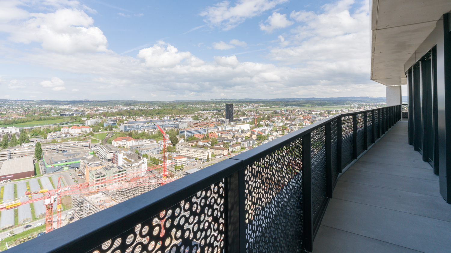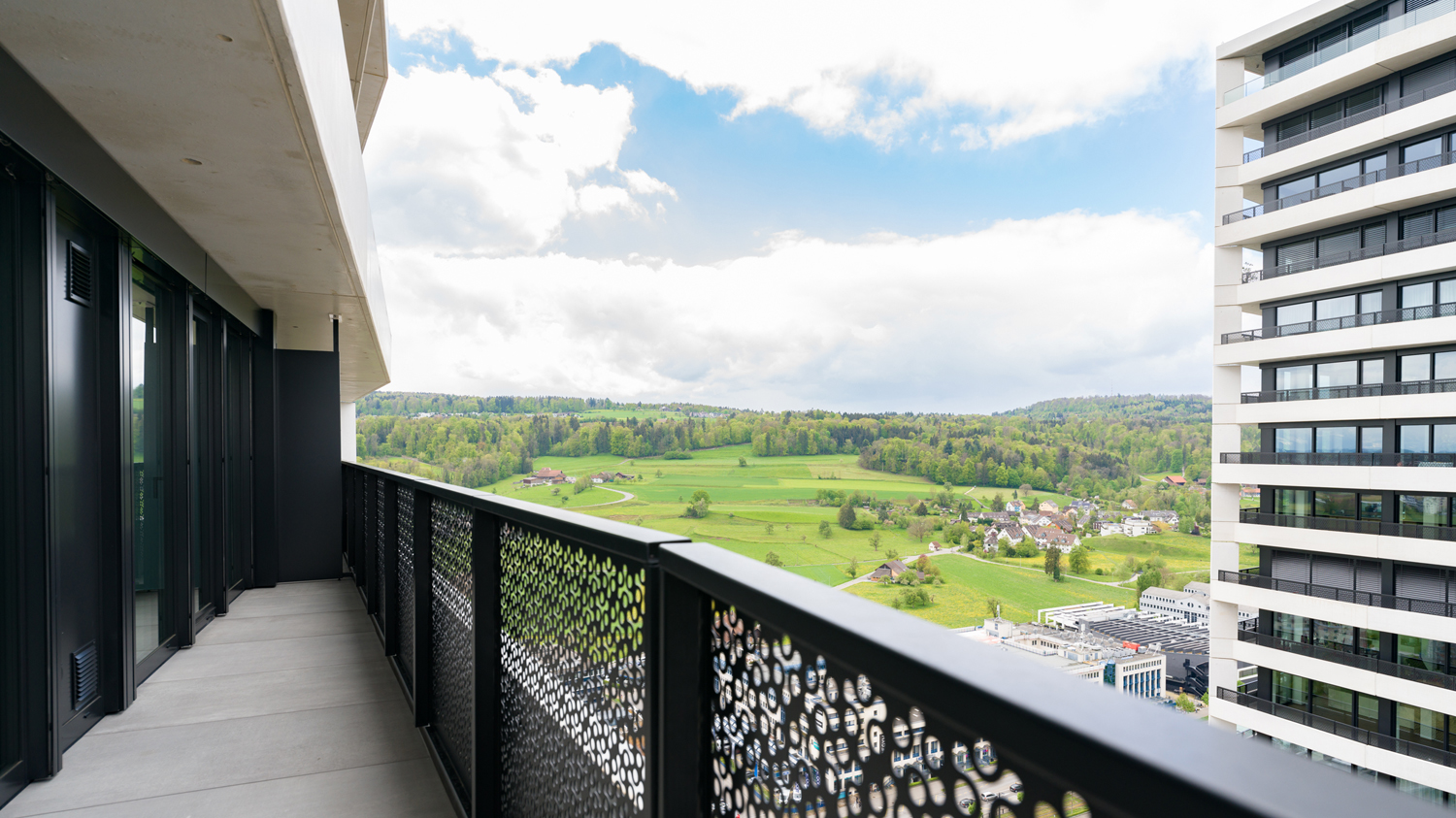 Diese aussergewöhnliche 5.5-Zimmer-Wohnung thront im 30. Stock des höchsten Wohnhochhauses der Schweiz, das mit stolzen 38 Stockwerken schon fast den Himmel berührt. Hier erwartet Sie ein Wohnkonzept der Extraklasse, das neue Massstäbe setzt und höchste Ansprüche an Wohnkomfort und Ästhetik erfüllt. Mit einer grosszügigen Wohnfläche von 166 m² und einem zusätzlichen Balkon von weiteren 44 m², der von jedem Zimmer aus zugänglich ist, bietet dieses einzigartige Juwel unvergleichliche Wohnqualität. Geniessen Sie einen atemberaubenden Ausblick von Westen bis nach Osten, über die Skyline von Dübendorf, den nahe gelegenen Greifensee sowie die majestätische Berglandschaft, eingebettet im höchsten der drei Türme des Projektes Three Point. In der malerischen Kulisse von Dübendorf liegt das aufstrebende Quartier ‚Hochbord‘, welches in den vergangenen Jahren eine bemerkenswerte Transformation von seinen landwirtschaftlichen Wurzeln zu einem begehrten Wohn- und Geschäftsstandort durchlebt hat.